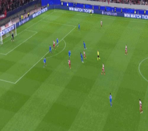 比赛开始后不久皇马意外率先丢球,第8分钟,波登斯、卡埃比禁区前沿连续一脚出球,奇基尼奥弧顶处不停球直接把脚怒射入网,0:1!第19分钟,奇基尼奥弧顶处迎球打门,这次被卢宁神勇扑出。在顶住对手三板斧后,皇马也立马做出回应;第22分钟,卡马文加分球,维尼修斯稍作观察后外脚背精准送到前场,姆巴佩心领神会反越位前插接球自信抽射穿裆措拉基斯入网,1:1!