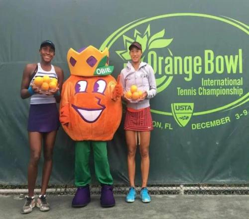 她完全有理由开心,因为“橘子碗”是国际青少年网坛的殿堂级赛事。赛事起源于1947年,冠军名单堪称一部网球名人录。罗杰·费德勒、比约·博格、约翰·麦肯罗、安迪·罗迪克,以及克里斯·埃弗特、卡罗琳·沃兹尼亚奇、可可·高芙、比安卡·安德莱斯库等名将,都曾在他们的青少年时期在此夺冠。
