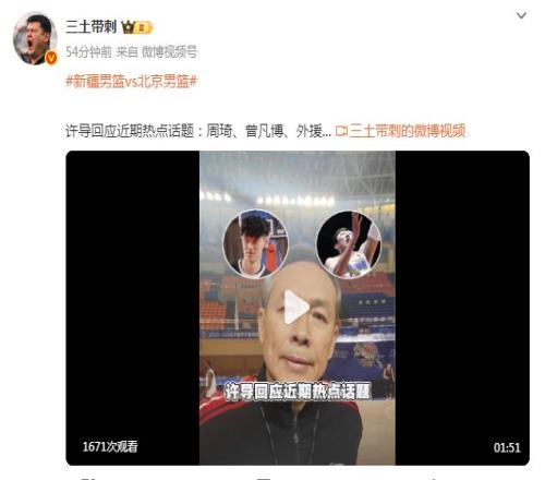 至于曾凡博虽然已经续约一周,但将继续缺席对阵新疆的比赛,许利民表示:“曾凡博的手续还没有办全。”