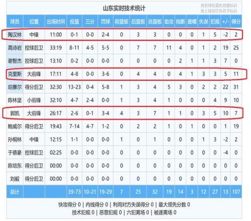 值得一提的是,从比分上,山东队似乎是赢得有点轻松,毕竟,最后是赢了13分。但是,从整个过程来看,山东队虽然是拿下了这场比赛胜利,但是,却赢得十分惨烈,因为,整场比赛,山东队的犯规数达到了27次,球队有4人被罚下场,其中,有2人被直接驱逐出场。