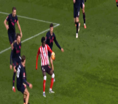 第41分钟,穆杰莱倒挂金钩打门,皮克福德救险