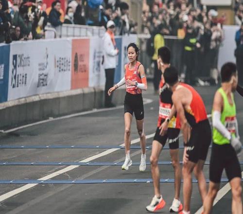 A我没想到我会是第一,哈哈哈,就是比起跑出PB的成绩,我完全没有想到我会拿国内第一。我们赛前预测,刘敏跟丁姐她们俩估计会是第一,因为丁姐跑完广州之后她就再也没有出来比赛,一直在系统地恢复,体能储备应该也七七八八了。然后刘敏的PB水平也很高,速度能力又好。基本上我说她们俩可能会一起跑,我争取保三争个二。